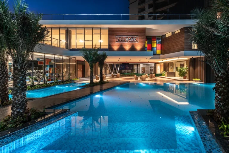The development boasts a combination of modern architecture and high-end amenities such as a clubhouse, swimming pools, parks, and a riverside promenade along the Mula-Mutha River. Additionally, the project integrates sustainable features like rainwater harvesting, solar energy, and waste management systems.